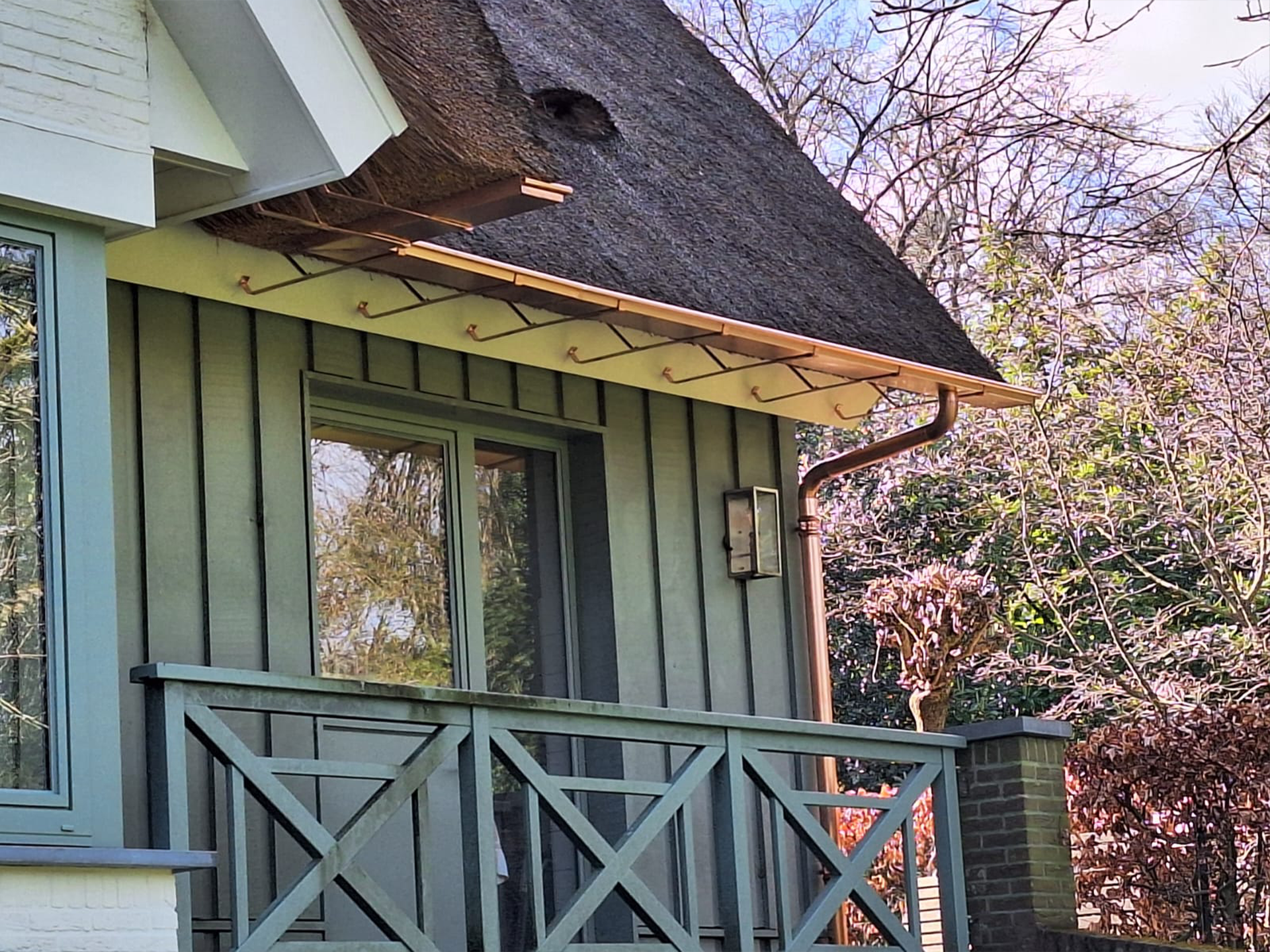 Dit huis had eerst geen dakgoten, maar de klant had erg last van doorslaande gevels. Het voegwerk ging steeds kapot, vanwege het opspattende water. Hij wilde alleen geen koperen goten en daaro hebben we naar een alternatief gezocht. Uiteindelijk zijn het zwarte zinken goten geworden die bestand zijn tegen rietzuur.We hebben ook nog zwarte regenpijpen […]