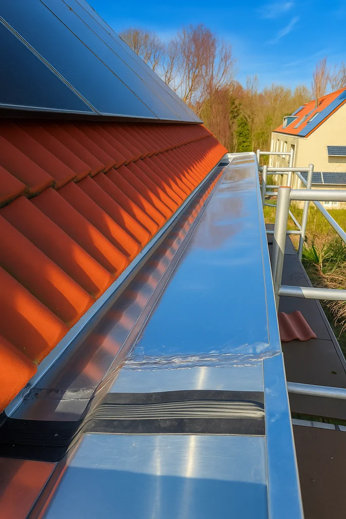Zink is een duurzaam materiaal dat zich al tientallen jaren heeft bewezen. Het gaat met gemak 40 jaar of langer mee, mits het vakkundig wordt gemonteerd. Daarom zorgen wij altijd voor nauwkeurig soldeerwerk en houden we rekening met uitzetting en krimp, zodat het resultaat jarenlang perfect blijft. 💪🔩