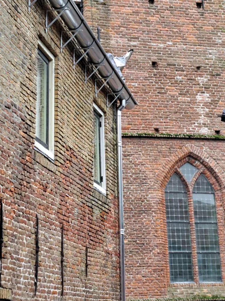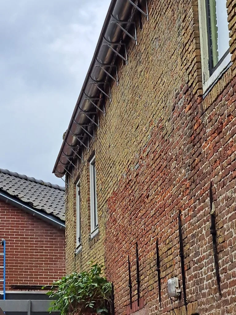 We hebben voor dit project speciale gootbeugels laten maken die passen bij de stijl van het gebouw.