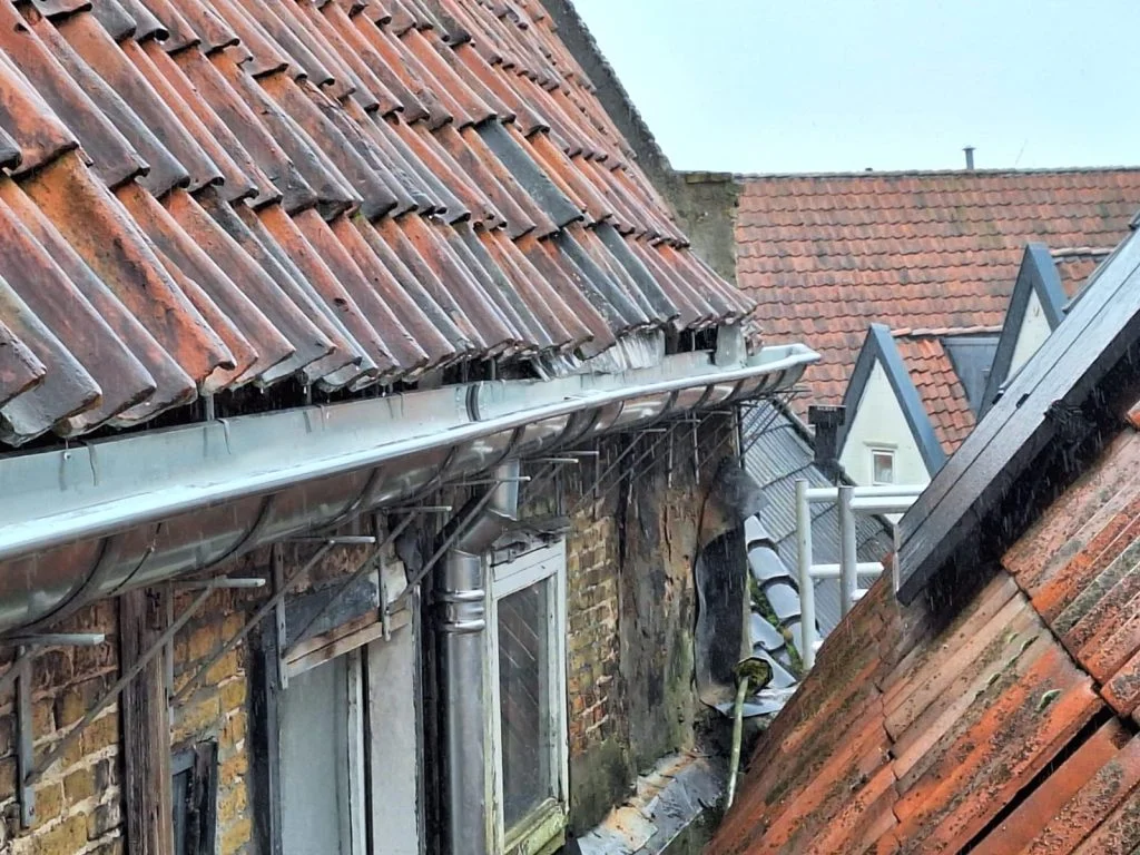 Daarnaast was het belangrijks dat de gootbeugels verstelbaar waren, want het gebouw hier was niet recht. Het was een uitdaging, maar uiteindelijk een mooi resultaat.
